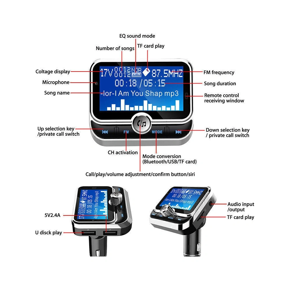Multifunktsionaalne FM-saatja Bluetooth-mooduli ja kaugjuhtimispuldiga, mis võimaldab juhtmevaba muusika taasesitust, käed-vabad kõnesid ja mobiilseadmete laadimist. Ideaalne autodele, millel puudub tehase Bluetooth-tugi.