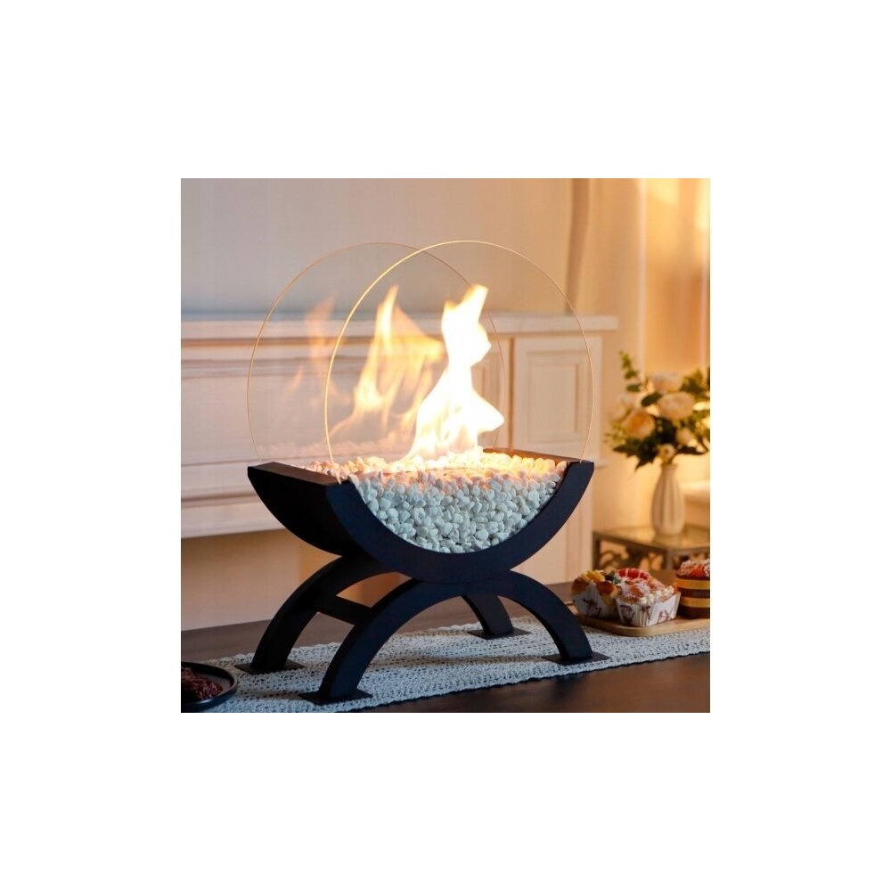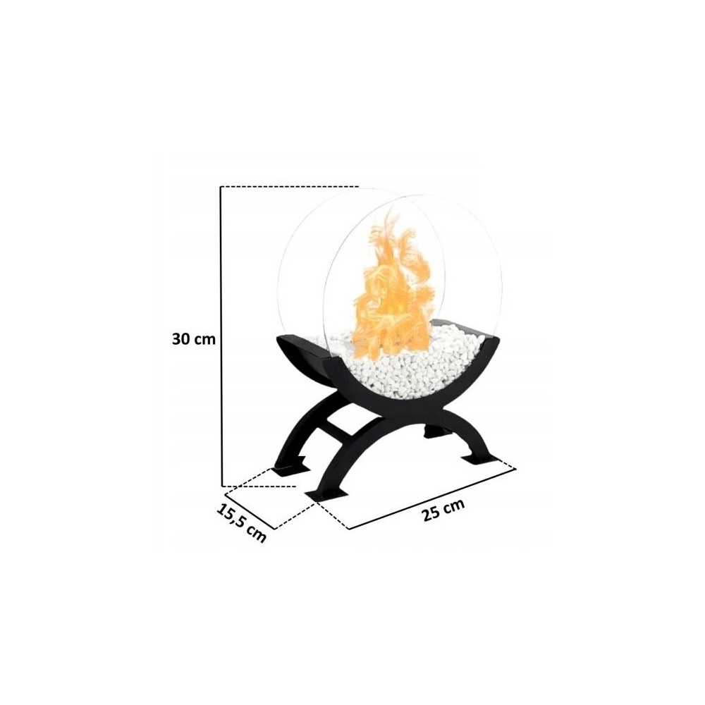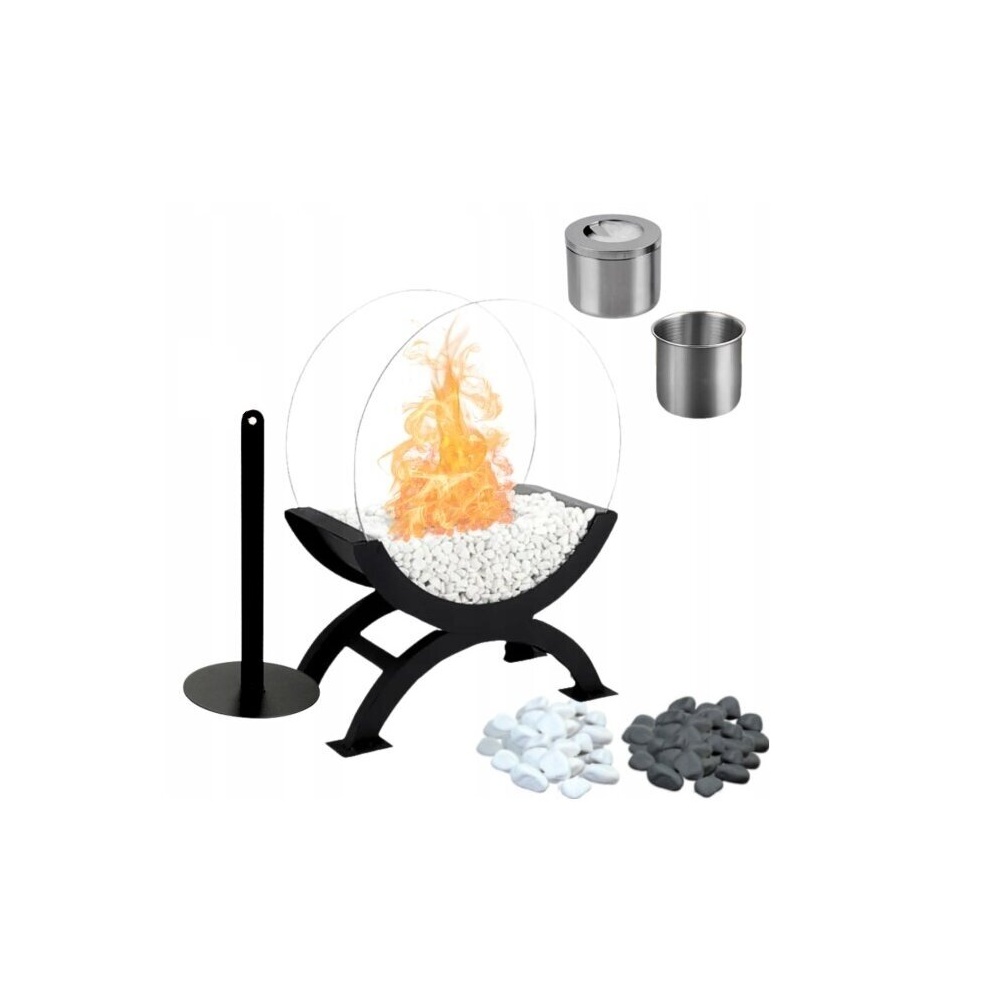 Moodne ümmargune bioetanoolkamin sobib ideaalselt elutuppa, magamistuppa, kontorisse või terrassile. See tagab puhta põlemise – suitsu-, lõhna- ja tuhavaba. Korstent ega lisapaigaldust pole vaja. Komplekt sisaldab kahte tüüpi dekoratiivkive (valget ja musta), mis võimaldavad teil kamina välimust oma sisekujundusega sobitada.