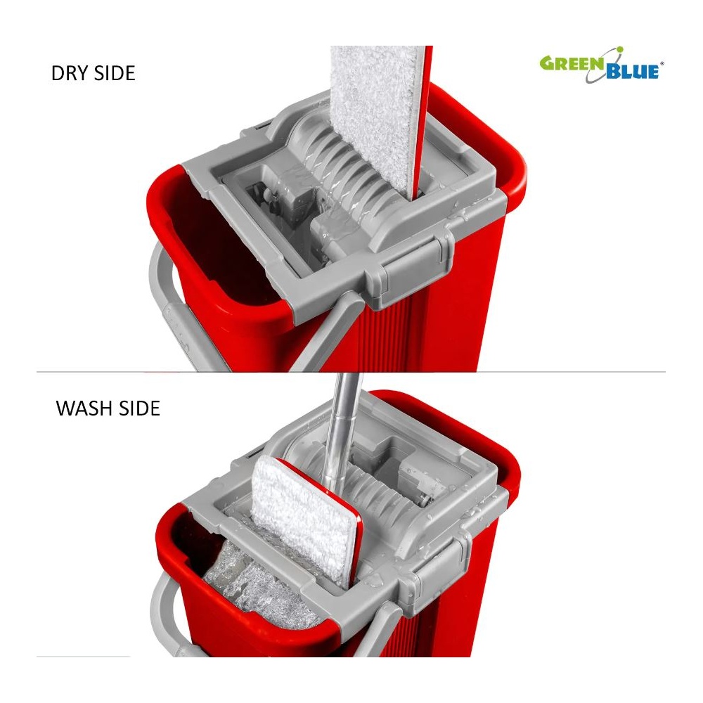 GreenBlue MaxiClean GB870 mop on varustatud veeämbriga, millel on mopi loputusmehhanism.