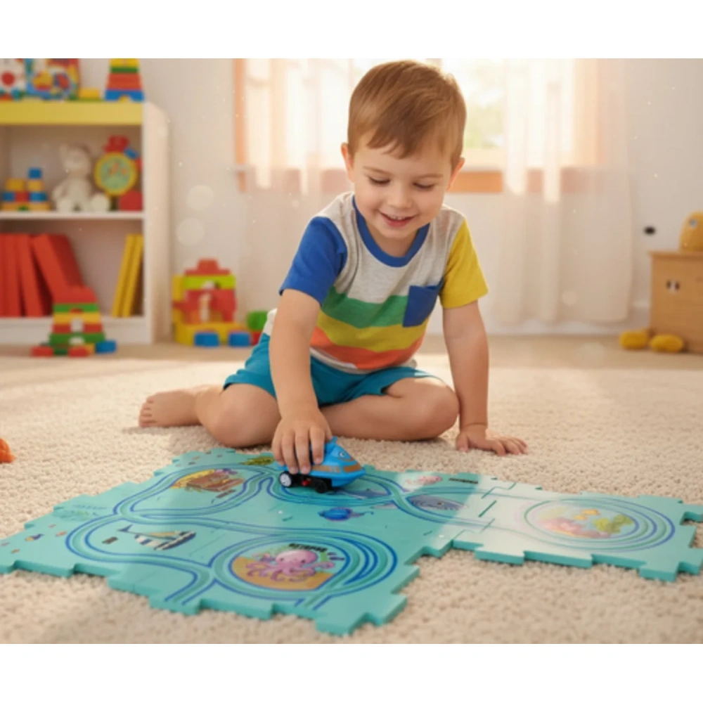 Lase loovusel voolata! 25-osaline autorajaga mängumatt pakub lastele põnevat ja harivat mängu, kus saab ise kokku panna tee, asetada liiklusmärgid ning lasta autodel rajal sõita. See on ideaalne mäng, mis ühendab õppimise ja lõbu.