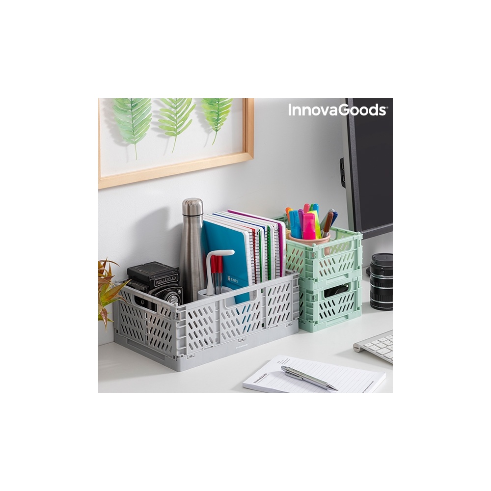 Väga originaalse ja dekoratiivse kujundusega ning moekates värvides multifunktsionaalsete organiseerimiskastide komplekt. Tänu oma uuenduslikule dekoratiivse hoiustamise kontseptsioonile on seda tüüpi kastid väga moes ja on kujundatud käeulatuses asuvateks ja selliselt, et neid saaks näha riiulitel, laudadel, töölaudadel jne. Tänu kokkupandavale ja virnastatavale kujundusele aitavad need asju korras hoida, kasutades üksteise otsa virnastudes maksimaalselt saadaolevat ruumi. Komplekti kuulub 3 kasti 2 erinevas suuruses, suur kast ja kaks väikest. Nende sisse saate paigutada mitmesuguseid igat tüüpi esemeid ja neid on lihtne puhastada. Ideaalne kodu (puhkeruum, vannituba, köök jne) korrashoiu optimeerimiseks, kuigi neid saab kasutada ka kontoris, kabinetis jne. Need on äärmiselt mitmekülgsed ja kohanemisvõimelised ning neid saab kasutada ka õues (siseõued, aiad, terrassid, rõdud jne), kuna need on kõikjal väga kasulikud ja sobituvad hästi sisekujunduse osana. Neid saab ka vaid mõne lihtsa liigutusega väga lihtsalt kokku panna ja lahti võtta.