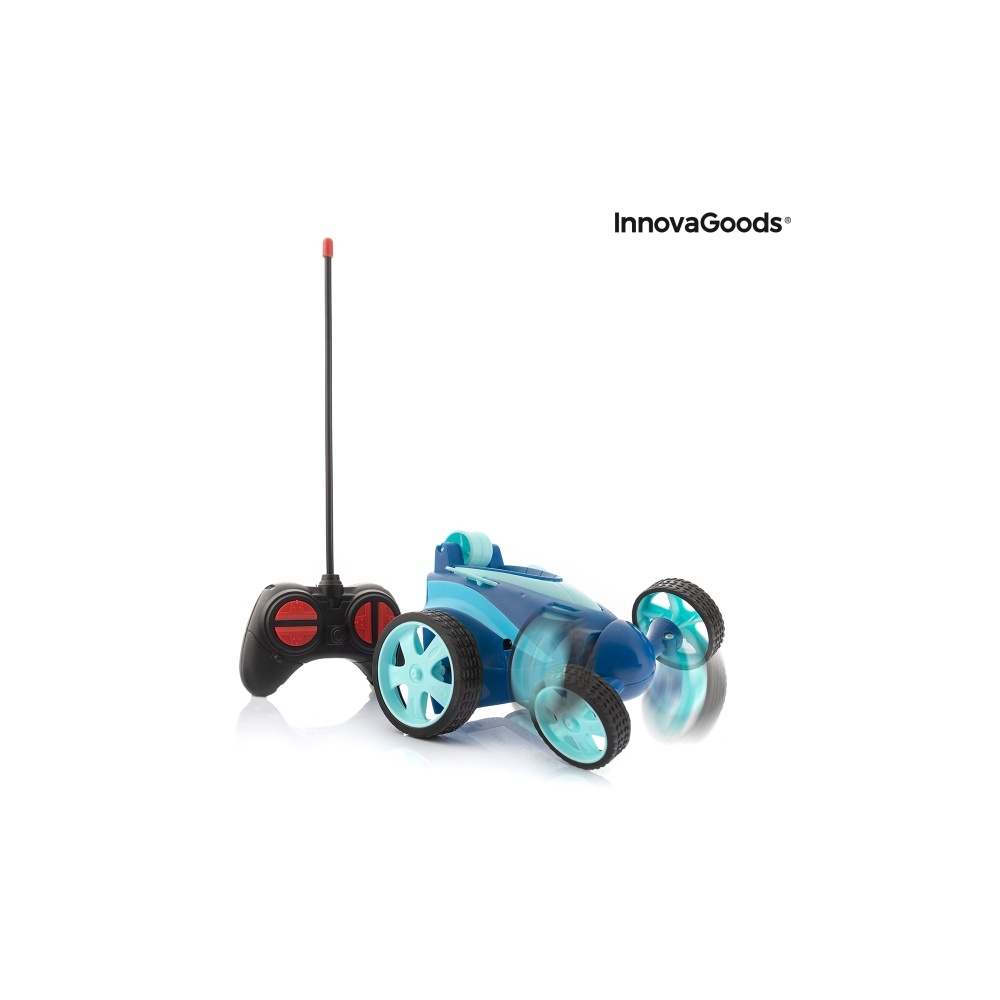Raadiojuhtimispuldiga Loopsy InnovaGoods taaslaaditav trikiauto on originaalne ja lõbus mänguasi laste lõbustamiseks, kuna sellega saab teha igasuguseid keerutusi ja pöördeid. Esirattad pöörlevad 360°, et teha palju trikke ja ületada igasuguseid takistusi. Sellel korduvlaaditavall raadio teel juhitaval autol on kaugjuhtimispult, millel on mitu käsku, et oma liigutusi lihtsalt ja mugavalt teha. See on ideaalne kingitus, et väikelastel oleks tore aeg.