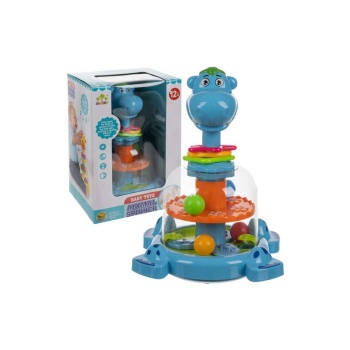 - TOETUS KÄSILISE ARENDAMISE JA MOTOORSE KOORDINATSIOONILE - mänguasi mitte ainult ei paku meelelahutust, vaid toetab eelkõige lapse käeliste oskuste ja silma-käe koordinatsiooni arendamist . Jõehobu pea vajutamine ja pallide pöörlemise jälgimine on suurepärane viis lapse osavuse ja käejõu arendamiseks . Lisaks õpetavad pöörlev ratas ja põrkavad pallid väikelapsele põhjuse ja tagajärje seoseid , arendades tema loogilise mõtlemise ja keskendumisvõimet .