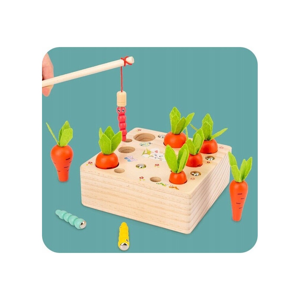 See pole lihtsalt mänguasi, vaid arendav õppevahend – laps saab püüda magnetiga usse ja sobitada porgandeid õigesse auku. See tegevus äratab uudishimu, keskendumisvõimet ja õpetab läbi mängu.