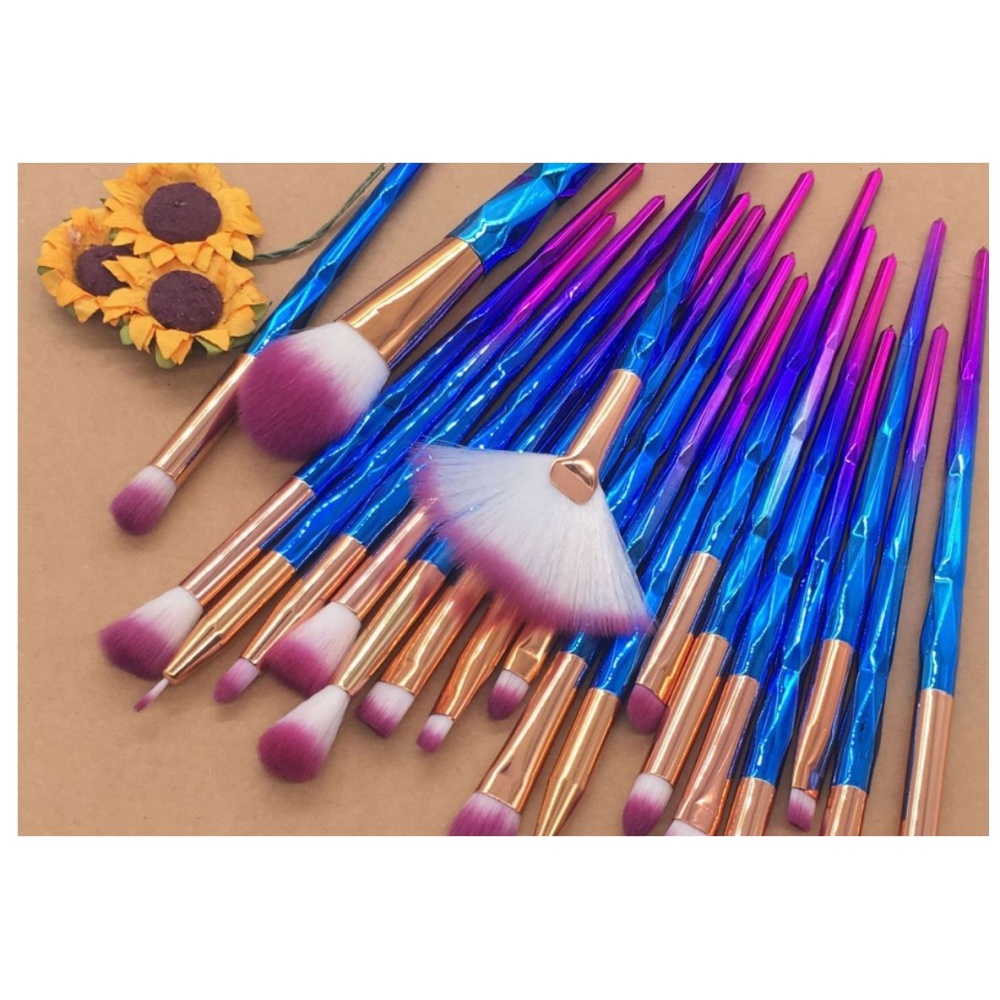 - Kompaktne komplekt 20 meigipintslist, mis on valmistatud ükssarviku stiilis.