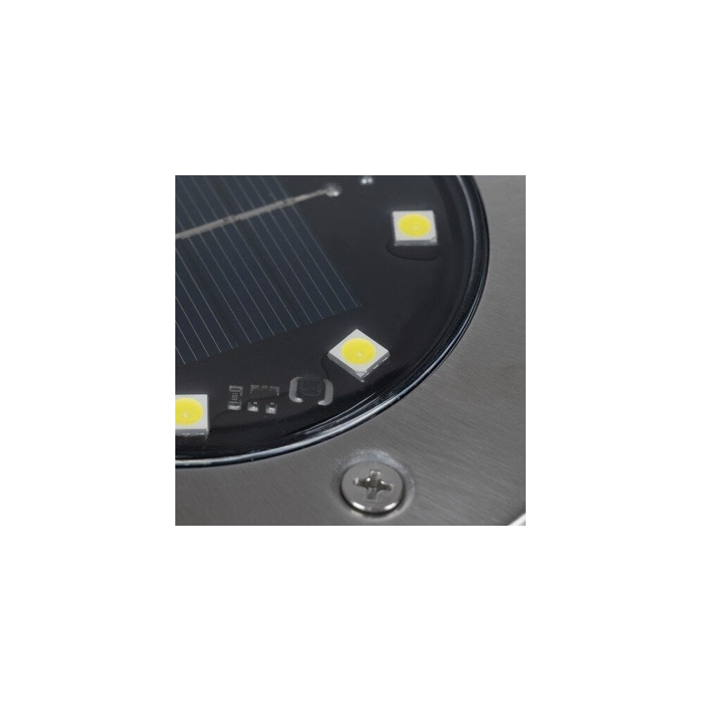 - Kõrge töötluskvaliteet ja ilmastikukindlus Igal lambil on kõrge veekindluse aste IP65 , mis tähendab, et need on vihma-, tolmu- ja isegi tugeva vihmasajukindlad . Lambi ülaosas asuv päikesepaneel on samuti veekindel ja vastupidav . Paneeli tagaküljel on diskreetne sisse/välja lüliti , mis võimaldab teil valgust vajadusel käsitsi sisse ja välja lülitada. Kogu lambi konstruktsioon, sealhulgas päikesepaneel, on paigutatud elegantsesse kvaliteetsest roostevabast terasest alusesse . See teras on äratuntav harjatud pinna poolest, mis annab lampidele moodsa ja stiilse välimuse ning kaitseb neid samal ajal korrosiooni ja muude kahjustuste eest.