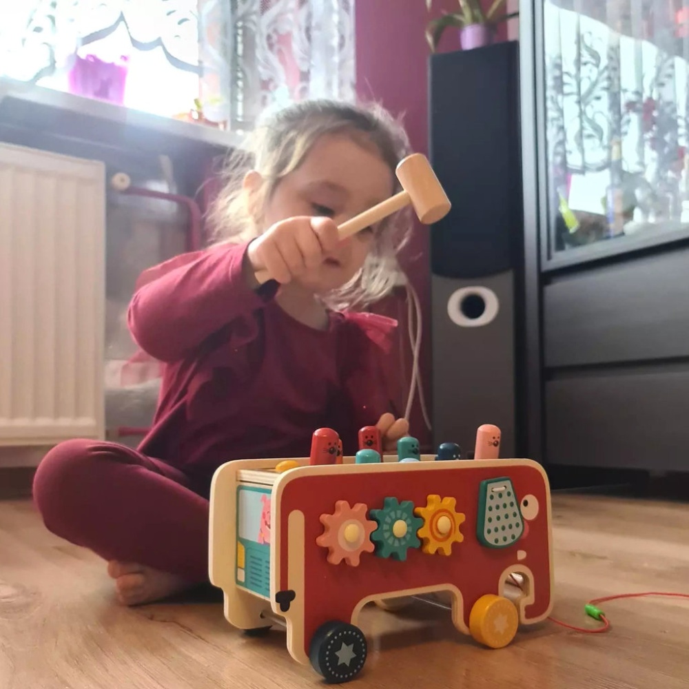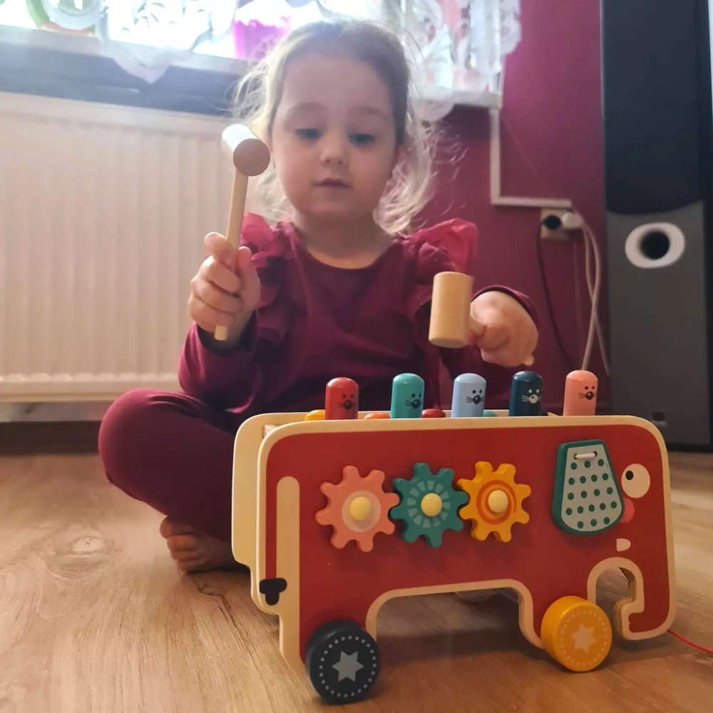 ARENDAV: puidust tegeluskeskus arendab lapse loogilist mõtlemist, motoorikat ning käe-silma koordinatsiooni. Ühtlasi ajendab motoorikakeskus õppima värve, numbreid ja loendamist.