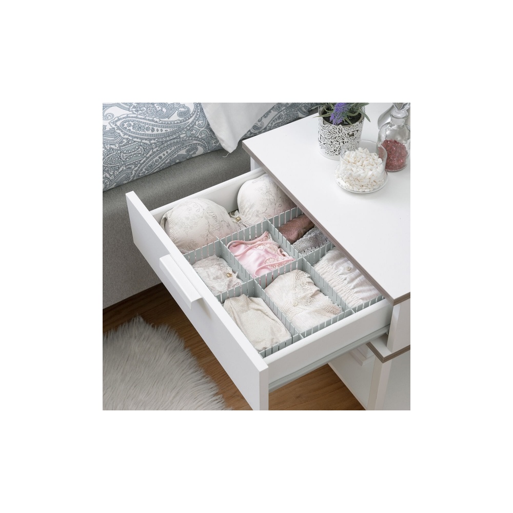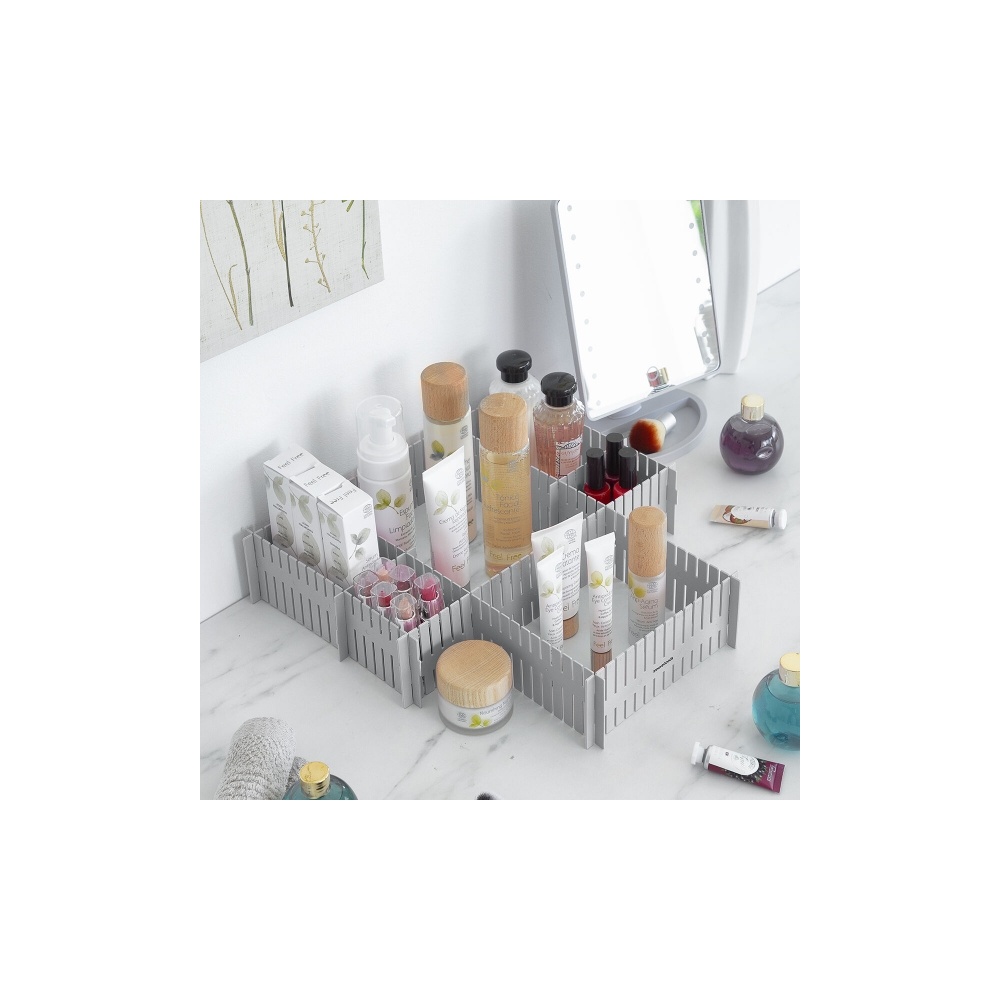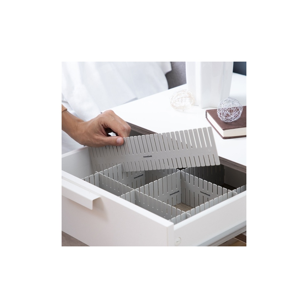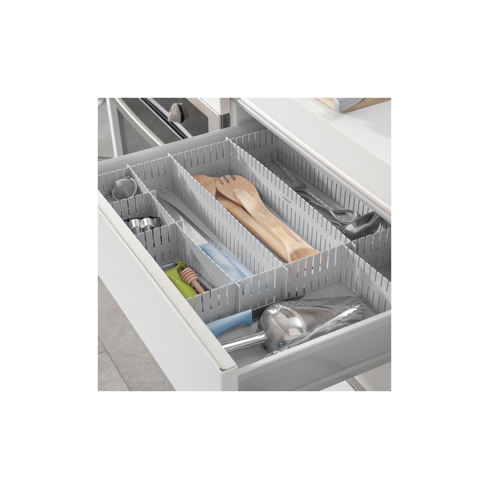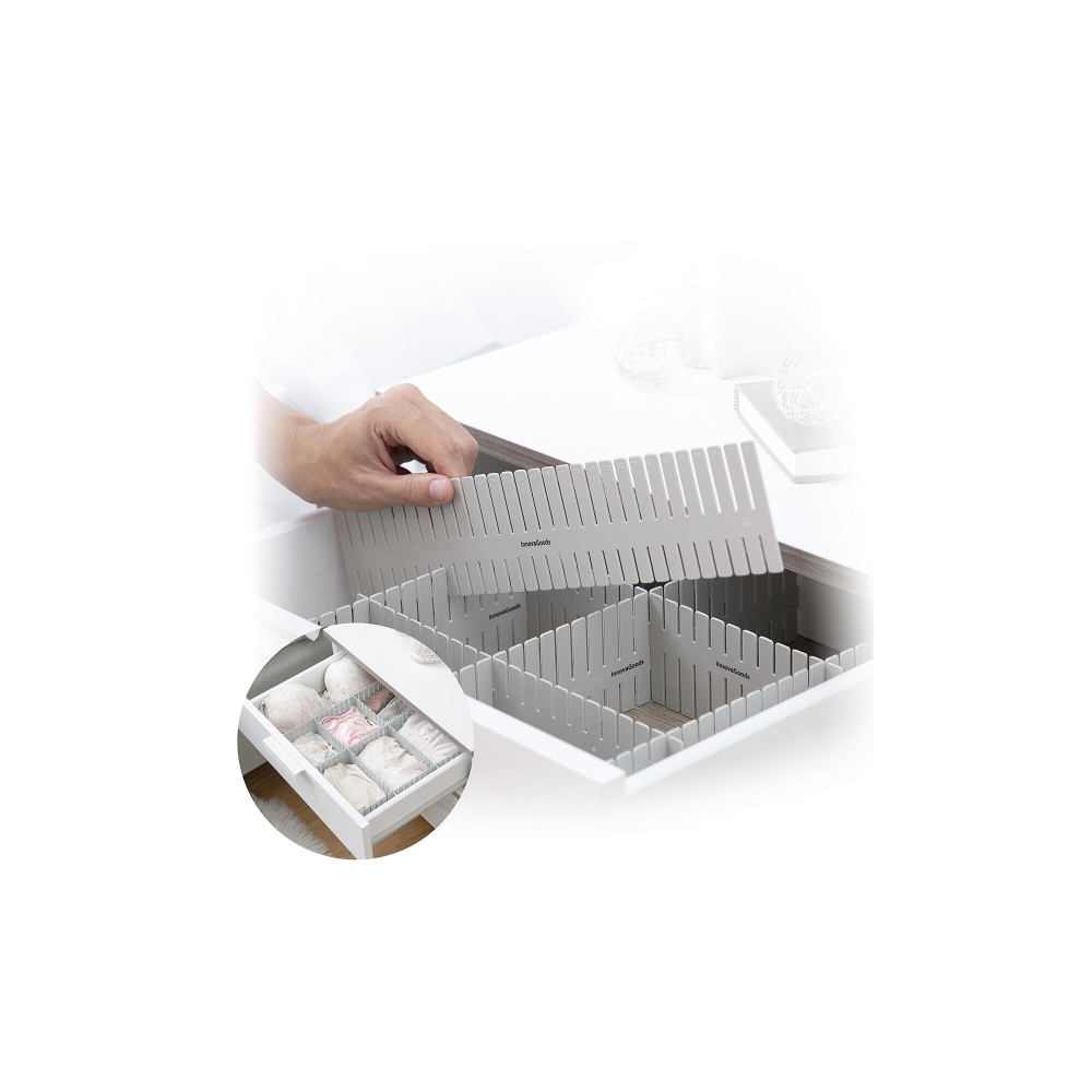 See reguleeritav sahtli korraldaja kohandub ideaalselt erinevate mõõtmete ja ruumidega, vastavalt teie vajadustele. Kaasasolevaid 16 ühikut saab lõigata ja ühendada risti, et need sobiksid täielikult soovitud ruumi. Neid saab paigutada ka vertikaalselt.