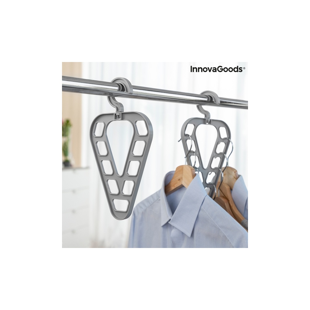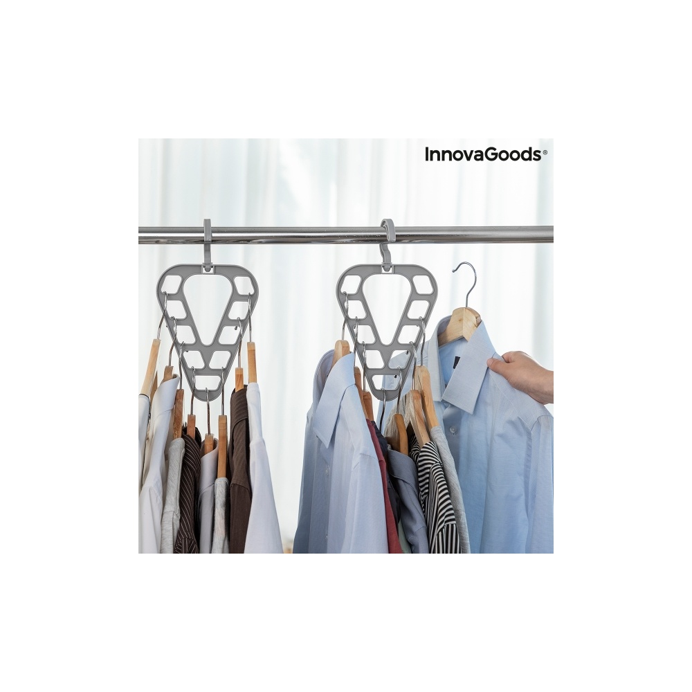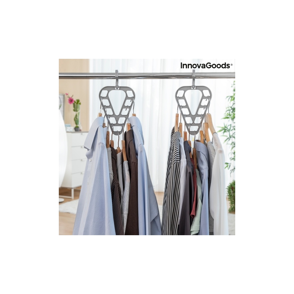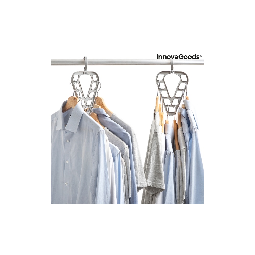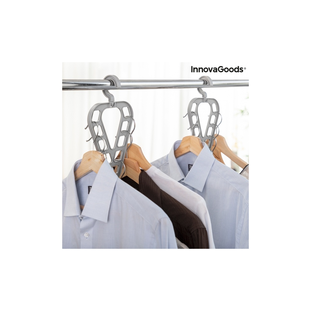 Orzer InnovaGoods riidepuude organiseerijate komplekt sobib suurepäraselt garderoobis oleva ruumi maksimaalseks ärakasutamiseks. Need riidepuu konksud säästavad rõivaste organiseerimisel ruumi, kuna võimaldavad riidepuud tõhusamalt ja korralikumalt paigutada. Igal riidepuu organiseerijal on mitu auku, kuhu riidepuud lihtsalt ja mugavalt riputada.