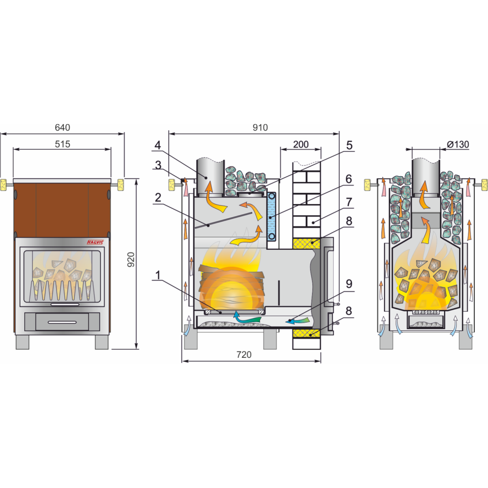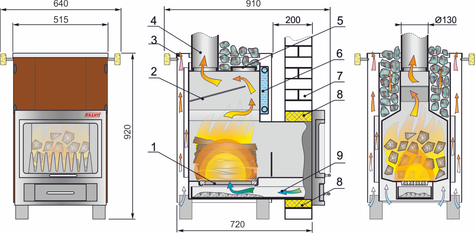 Saunakeris Kalvis PR2-S läbi seina köetav, 7KW , roheline