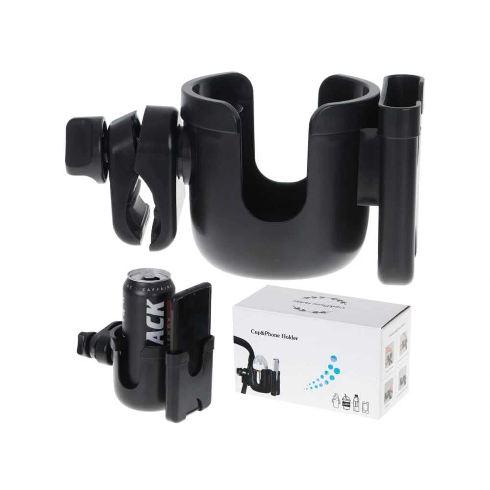 Ühes seadmes on pudelihoidik ja telefoni tasku, et kõik oluline oleks alati käepärast. Täiuslik lahendus aktiivsetele vanematele, kes hindavad funktsionaalsust, korrektsust ja mugavust jalutuskäikudel.